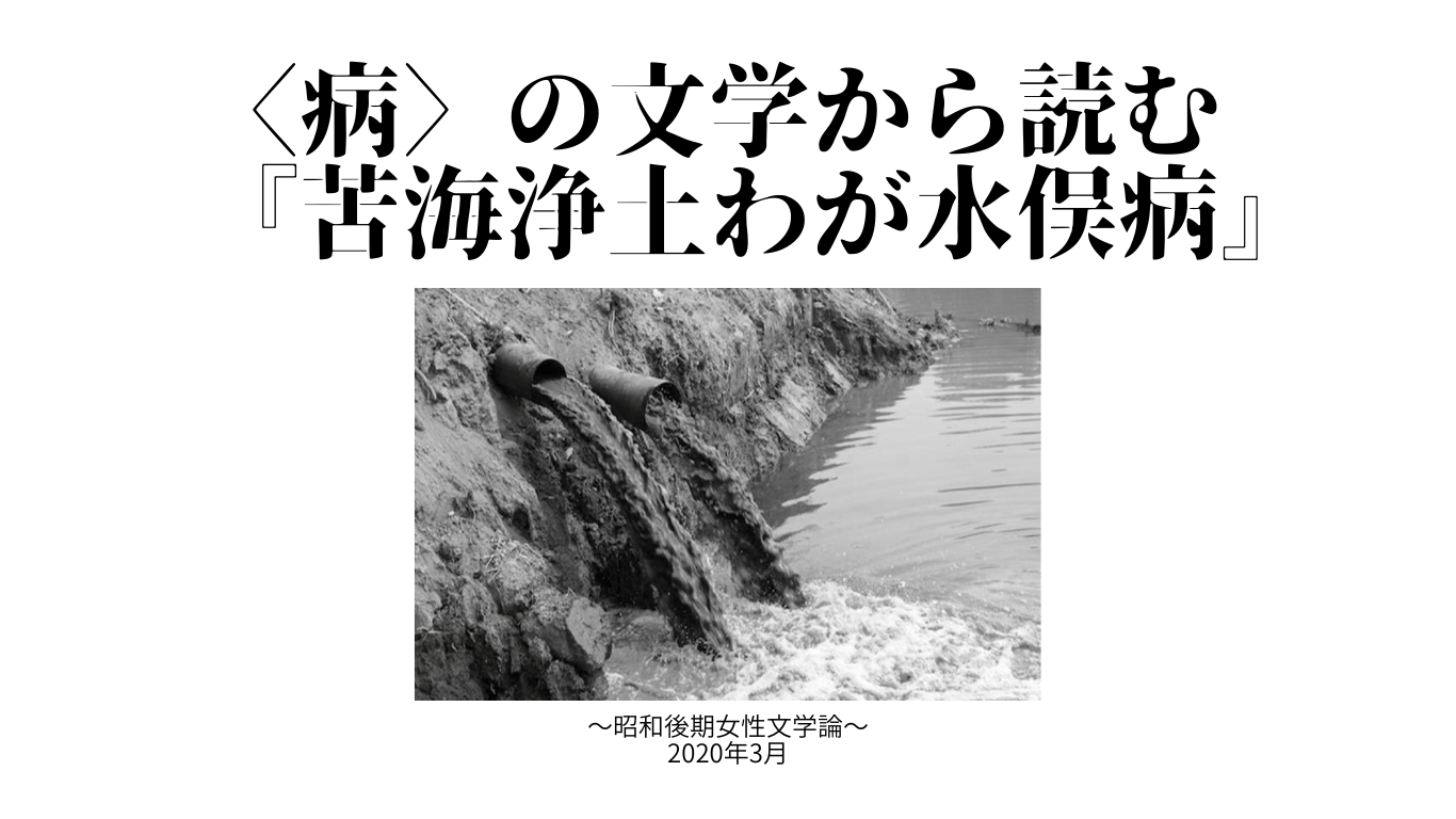 〈病〉の文学史において、最も多く描かれた病は、結核、不治の病・死の病、〈病のロマン化〉である。『隠喩としての病』で指摘されてから、文学における〈病〉は「〈病〉のロマン化」の側面で分析・批評されることが多い。〈病〉は病原菌や遺伝性などが原因であり、元をたどっても、その罹患や発病に関して、患者や周囲が完全には回避できないものであった。前提には、〈病は、人間が作り出したものではない〉という点があった。コレラ、結核、ペスト等、従来〈病〉は人間が作り出すものではなく、人間の力の及ばない場所で発生し、猛威を振るうものであった。一方、〈病は、人間が作り出したものではない〉〈人間の力が及ばない領域〉という文脈を大きく覆したのが、石牟礼道子が描いた水俣病、被爆者たちを描いた原爆文学である。いずれも、人類の手で、文明・科学技術によって生まれた〈病〉であり、産業汚染や、体制や企業の利益優先、人命の無視の結果としての人災である。まさに〈病〉の文学史の上でも、時代を変えた作品と再定義できる。以上のことから、本論では『苦海浄土』を〈病〉の文学の視座から読み直すことで、新たな評価を試みたい。『苦海浄土』は、ルポルタージュの手法を用いることで、実際にあった公害病問題を題材にしており、水俣病患者の描かれ方についても、〈病〉と〈ジェンダー〉の関係性や、〈病者〉の聖化と〈語り〉の構造について興味深い内容を含んでいる。これまでの『苦海浄土』研究動向では、反近代・近代文明批判としての意義、石牟礼独特の文体に着目した「聞き書き」について、石牟礼道子独特の〈語り〉〈語り部〉の役割と構造の分析等が中心であった。管見ではあるが、中島虎彦「文学にみえる障害者像 石牟礼道子「苦海浄土」」(「ノーマライゼーション 障害者の福祉」一九九六年一一月号)が、障碍者文学の視点から触れている以外には、先行研究において、石牟礼道子作品の〈病〉の文学として再検討する論はまだない。
